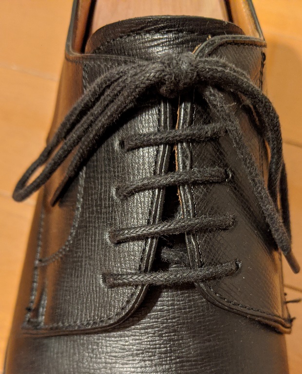 スコッチグレインに関しては、価格についても予算の範囲内ではあり、黒の内羽根ストレートチップでスーツで使用する際にはピッタリではありましたが、今回は外羽根の靴がほしいこともあり候補から外れました。